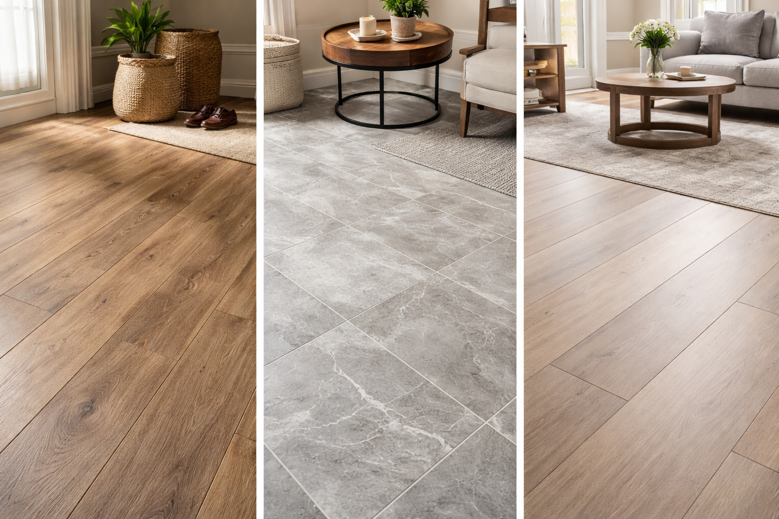 Hardwood is highly durable and ages beautifully, often increasing the value of your home. It’s also an excellent choice for high-traffic areas like living rooms, as it stands up to wear and tear well with proper maintenance.